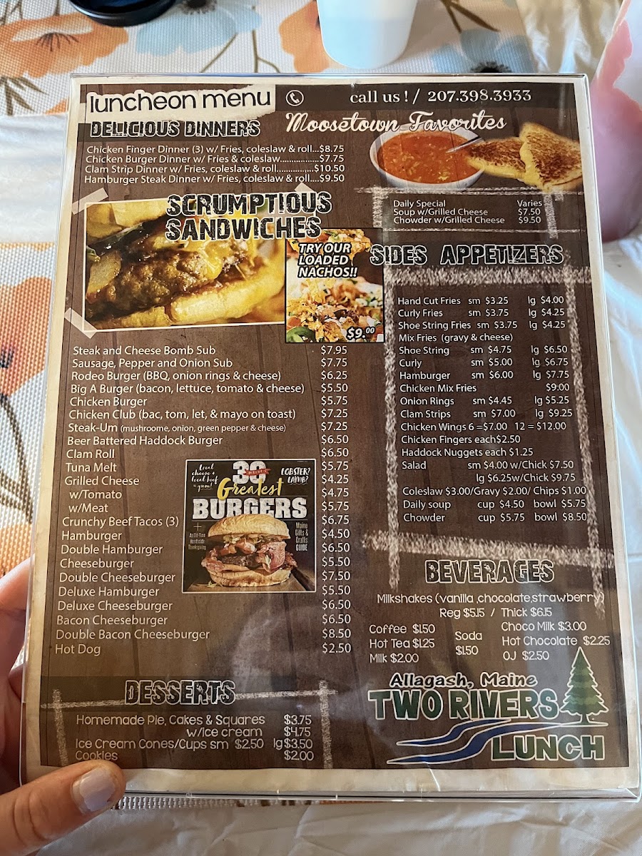 If you’re looking for a cozy spot to enjoy a hearty lunch, the Two Rivers Lunch Menu at 75 Dickey Rd in Allagash, ME, has something for everyone. Whether you’re in the mood for a fresh salad, a delicious sandwich, or a comforting bowl of soup, you’ll find it here. The menu features a great variety of local favorites, with a focus on fresh ingredients that bring out the flavors of Maine. From the classic options to some more unique choices, you can expect to find a satisfying meal no matter what you're craving. Whether you're dining with friends or grabbing a quick bite on your own, there’s something to make everyone feel right at home. If you're near Allagash, don't miss the chance to indulge in some tasty bites that are sure to hit the spot!